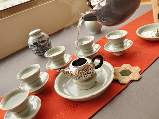 J'utilise ma bouilloire en argent et de l'eau qui vient juste de bouillir. Bref, j'y mets le paquet pour infuser ce thé. Cependant, je fais attention à ce que mon flot d'eau bouillante ne soit pas chaotique, mais qu'il s'écoule de manière précise et contrôlée dans la théière.